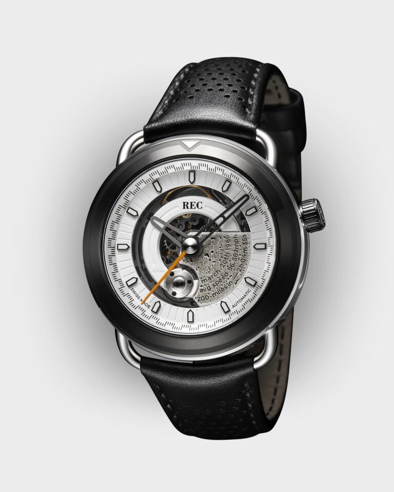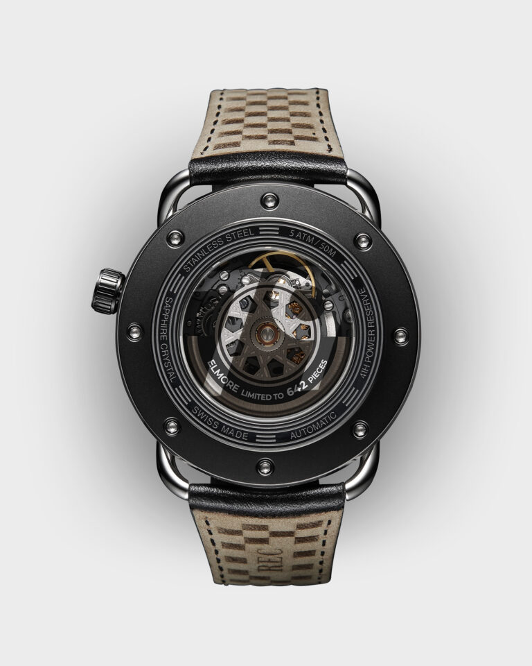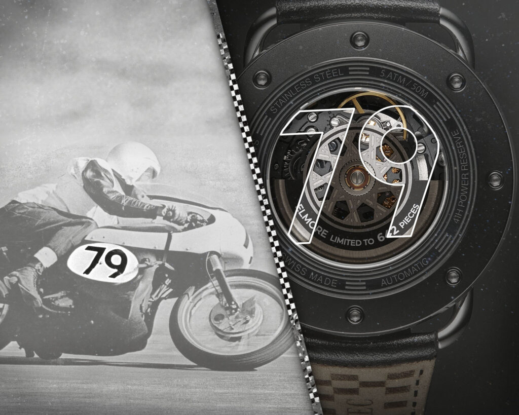 To honor this unforgettable moment, the original clutch plates from Elmore’s winning bike have been meticulously repurposed, making each TTT Elmore timepiece a rare and unique piece of racing history.