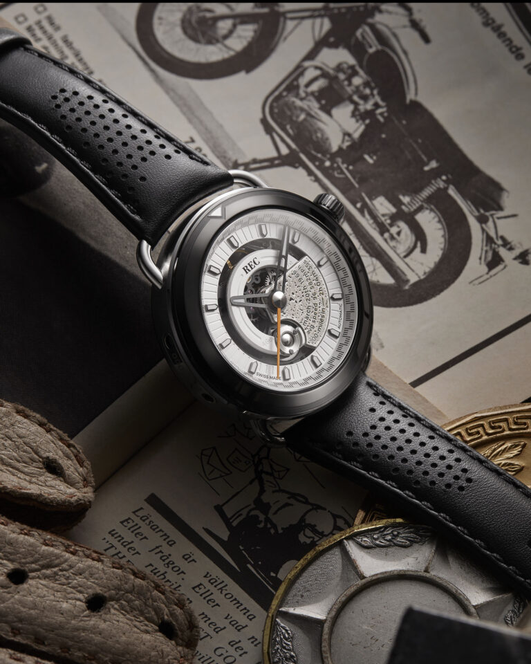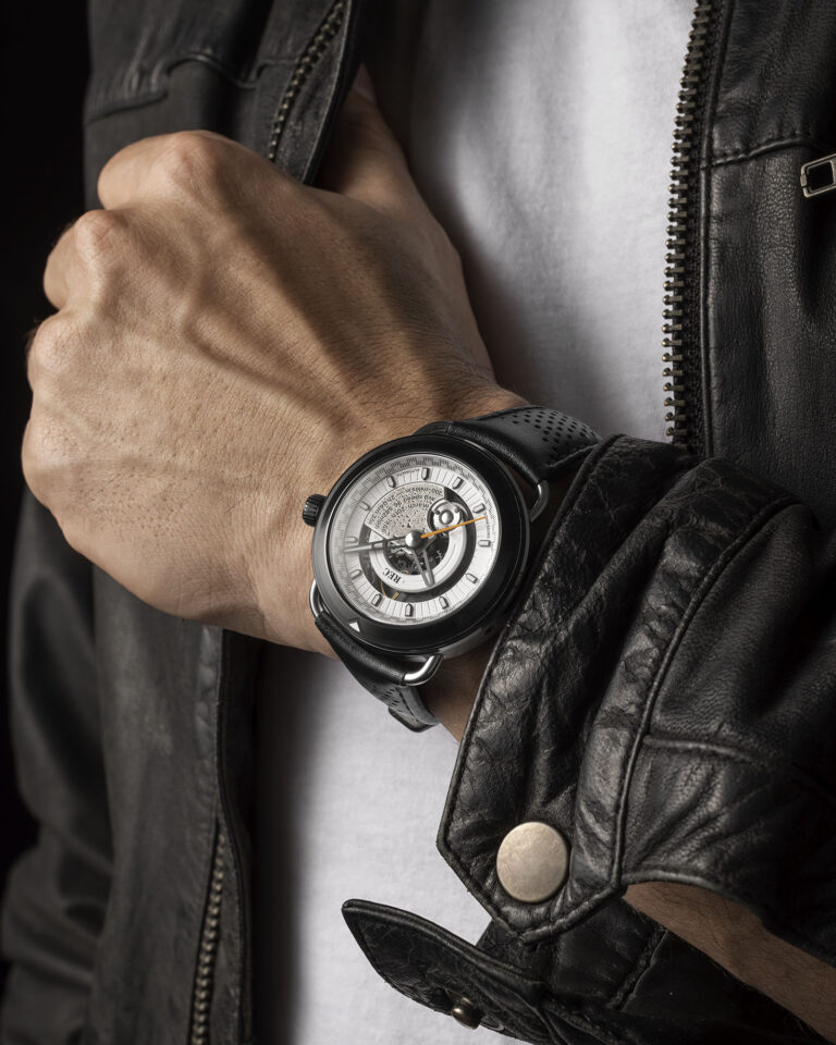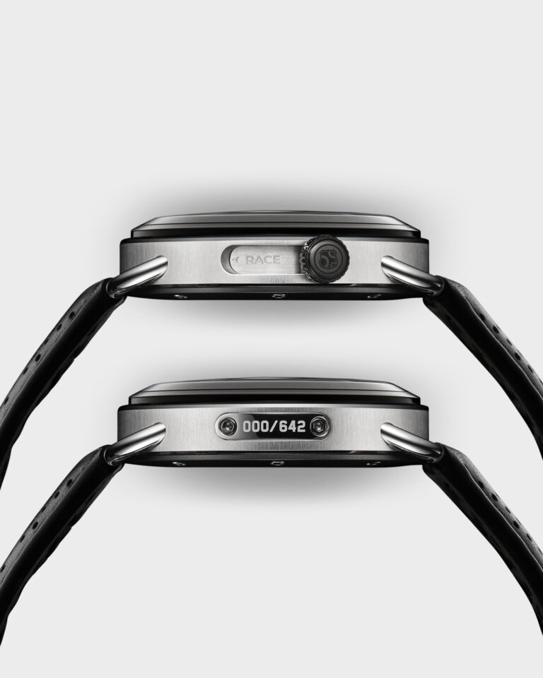 “TTT” represents “Twist The Throttle,” indicating the motorcycle-inspired collection’s dual-case construction, enabling wearers to rotate the dial 30 degrees clockwise.