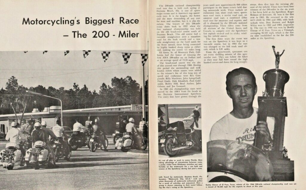 Despite the setbacks, Elmore’s stunning performance saw him overtake the entire field, winning by a full minute. Averaging 96.582mph (156 km/h), his victory is still celebrated as one of the most famous in Daytona 200 history.