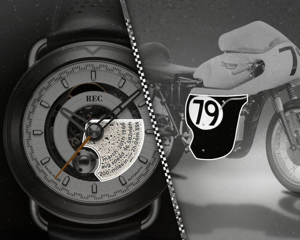 The TTT Elmore is a limited edition timepiece crafted from Buddy Elmore’s legendary 1966 Daytona 200-winning T100 race bike.