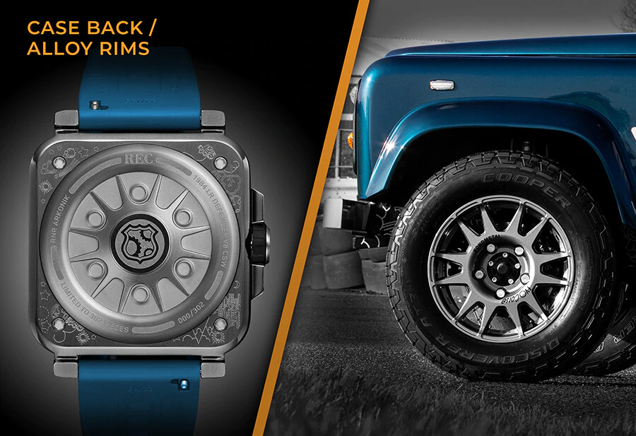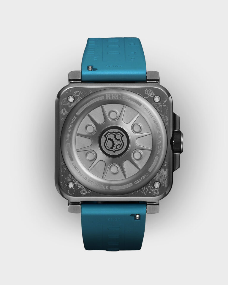 The RNR Arkonik is a limited edition timepiece created in collaboration with Arkonik, inspired by the restored 1984 Land Rover Defender affectionately named “UJO.”