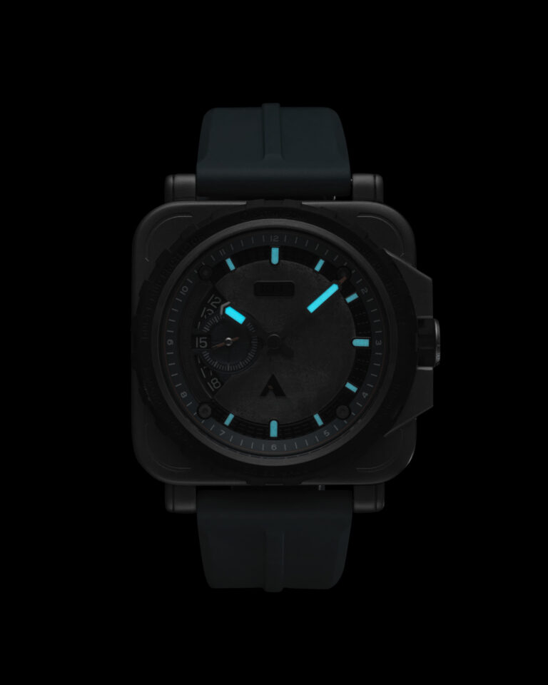 Handcrafted aluminum dial cut directly from the Arkonik signature Land Rover UJO – a 1984 Land Rover 110.