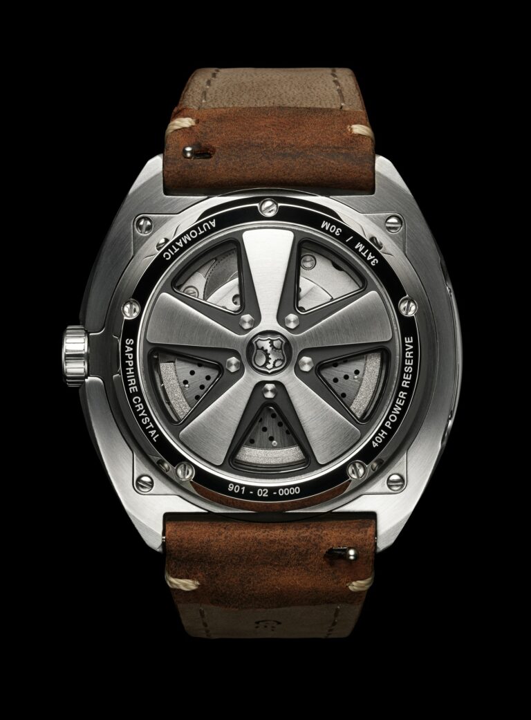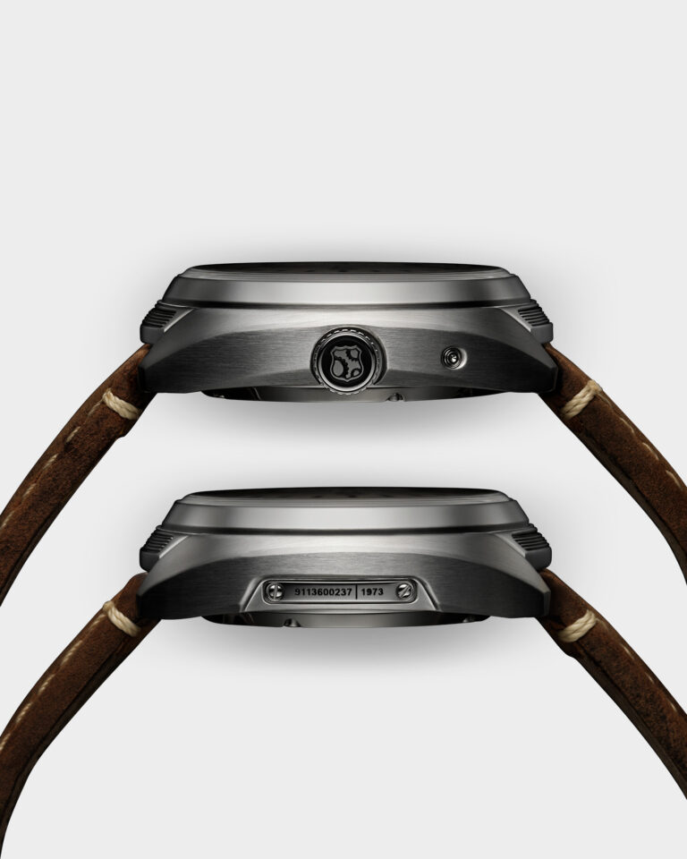 Every 901 watch proudly displays the Vehicle Identification Number (VIN) and production year of the reclaimed Porsche on the left side of the case. Accompanying this piece is a personalized story card, recounting the history and journey of the specific car that gave it life.