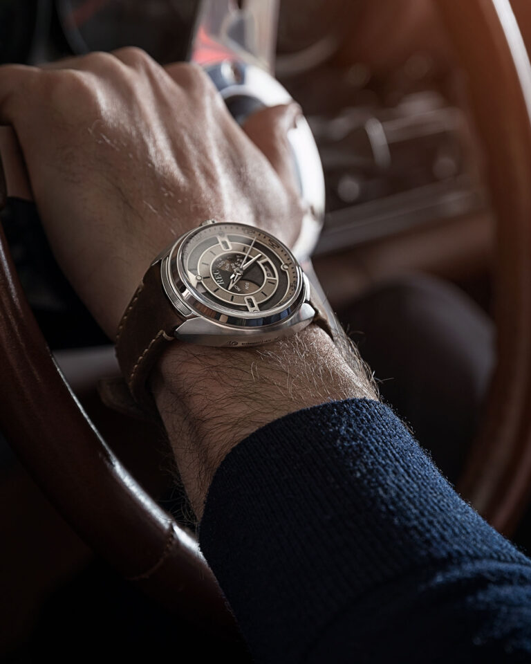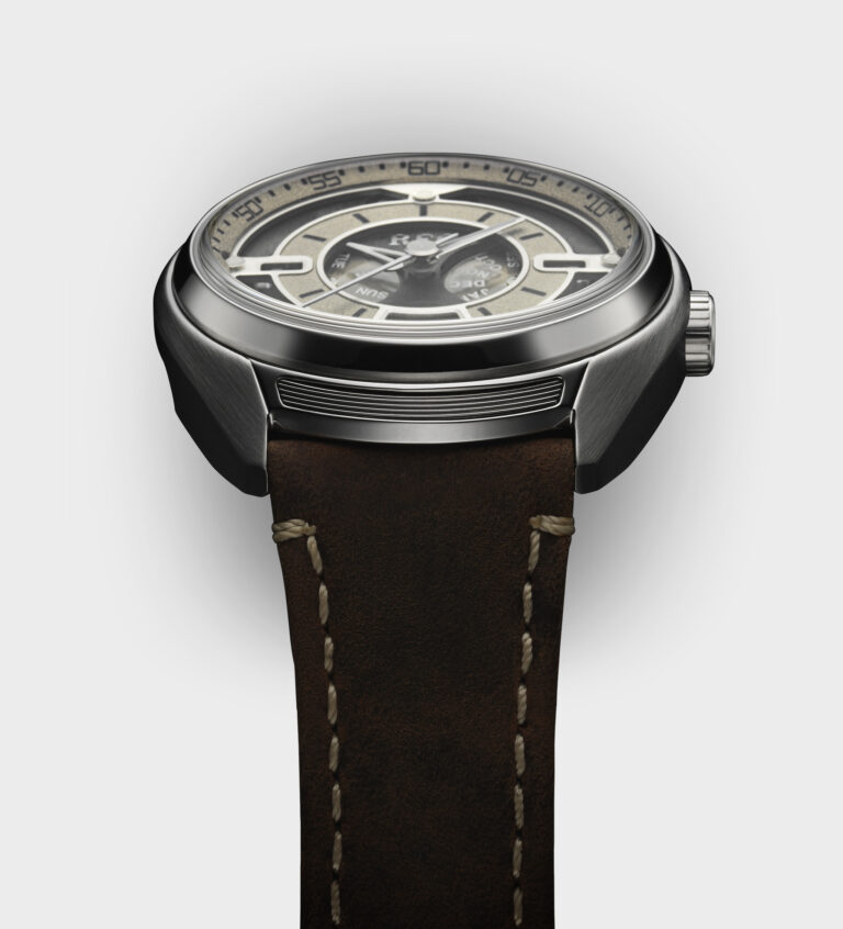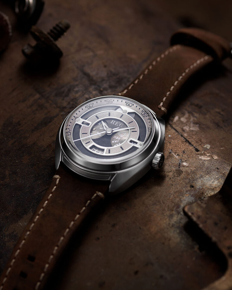 Designed for both elegance and comfort, the 901 features a distinctive rounded case with short lugs and a luxurious double calf leather strap. The dial of each watch is uniquely characterized by subtle marks and imperfections, ensuring that no two pieces are alike, making each 901 truly one of a kind.