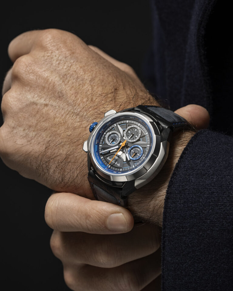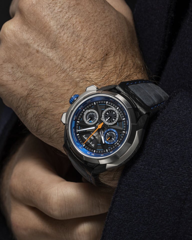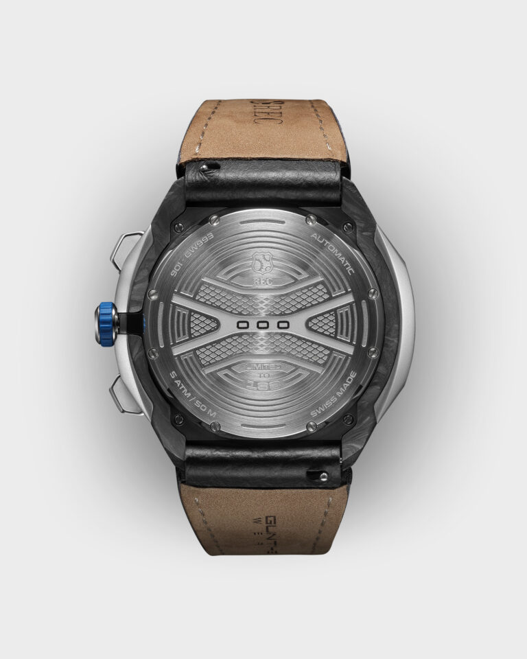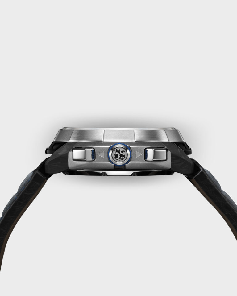 To honor that, we integrated carbon fiber granulate directly from the Carbon Exoskeleton into the watch case itself. Not just symbolic – structurally real. This is material storytelling at its peak.