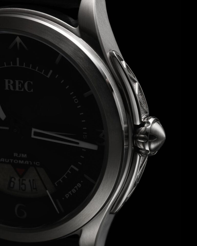 Each RJM watch features aluminum from PT879’s damaged wing structure – real metal, marked by war, no two alike.