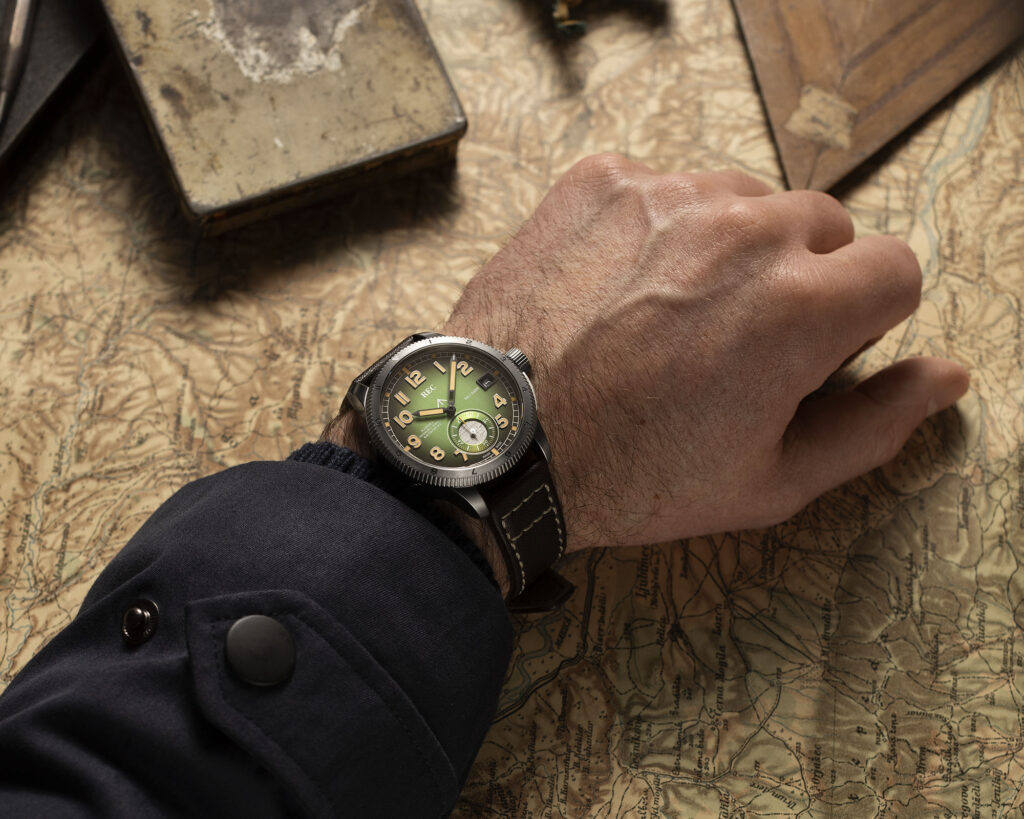Fragments of the fuselage too damaged to fly again have found new purpose – embedded in the 6 o’clock subdial of the X4009 timepiece.