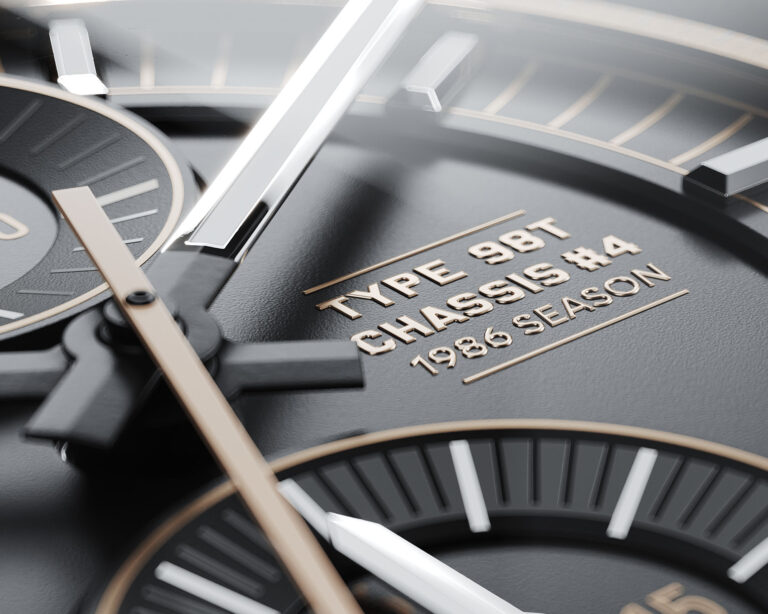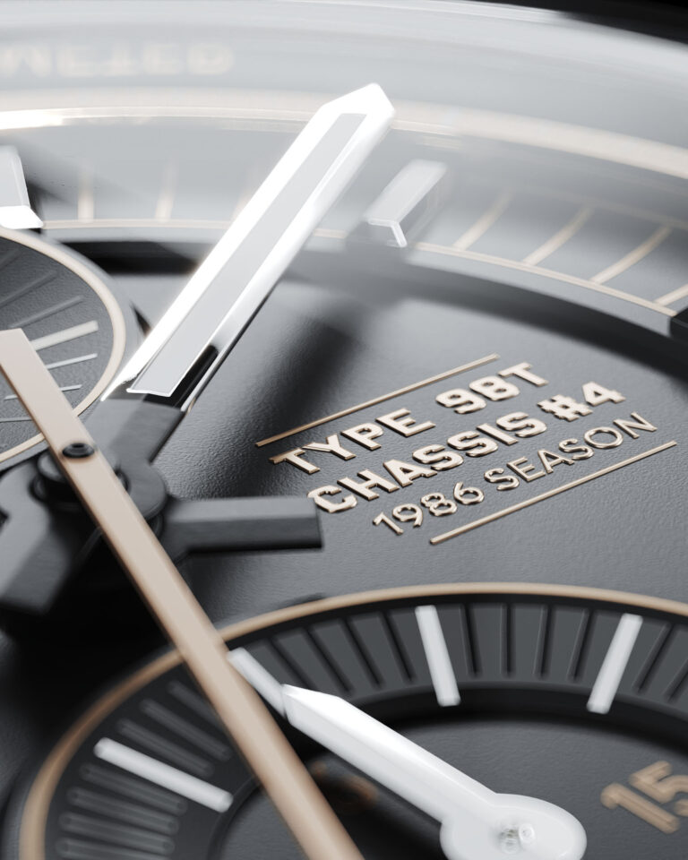 Created in partnership with Classic Team Lotus, the 98T/4 is a Swiss-made chronograph crafted from the Lotus 98T chassis no. 4 – a Formula 1 icon that raced under Ayrton Senna during the final eight Grand Prix of 1986.